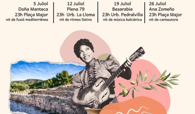 El festival En Viu, festival de músiques del món, es celebrarà del 5 al 26 de juliol a la Plaça Major d’Olocau. Tota una programació organitzada per l’associació cultural Sincronies junt a l’agrupació musical ‘La Melodía’.