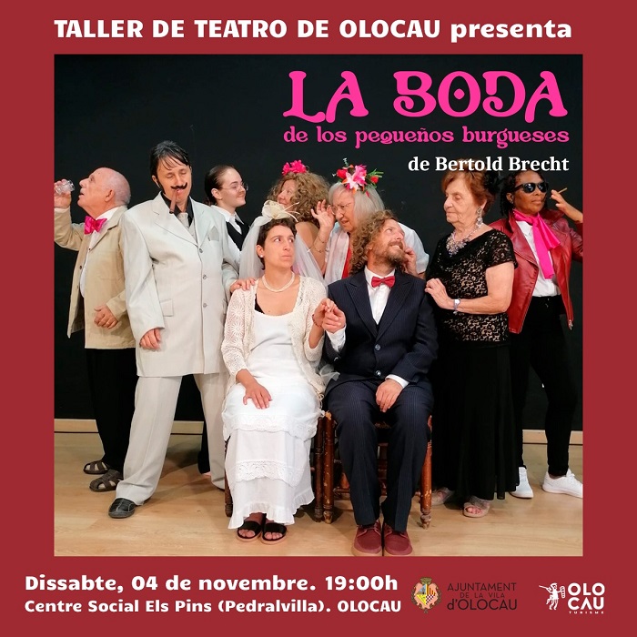 El dissabte 4 de novembre, el Taller de Teatre d’Olocau reestrena l’obra ‘La boda dels xicotets burguesos’ de Bertold Brecht. Una de les primeres obres de l’autor alemany que ja despunta amb la seua denúncia de la hipocresia en les relacions socials reflectida en este celebració tan excepcional.