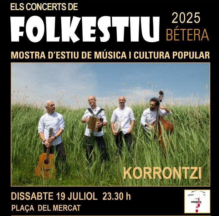 A les 23:30 hores, concert de ‘Korrontzi Folk Band’ presentant el seu projecte ‘Korrontzi dantzan’.