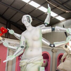 Entrem en l’Estudi ‘Chuky’ en el polígon les Eres de Benaguasil per a descobrir de la mà de l’artista faller Raúl Martínez els seus ‘Ex-cultures’ realitzades a quatre mans amb la dissenyadora catalana Marina Salazar, creadora de la ‘teta’ que va pujar a l’escenari del BenidormFest Rigoberta Bandini amb el seu ‘Ai mamà’.