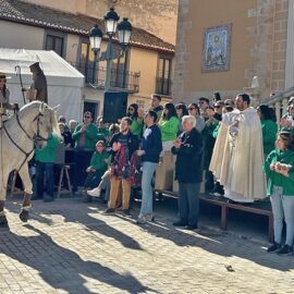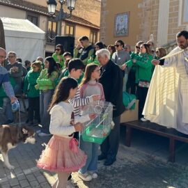 Després de l’arribada de la imatge del Sant acompanyada pels clavaris i *tabales i dolçaines, es va iniciar la benedicció de tots els animals presents.