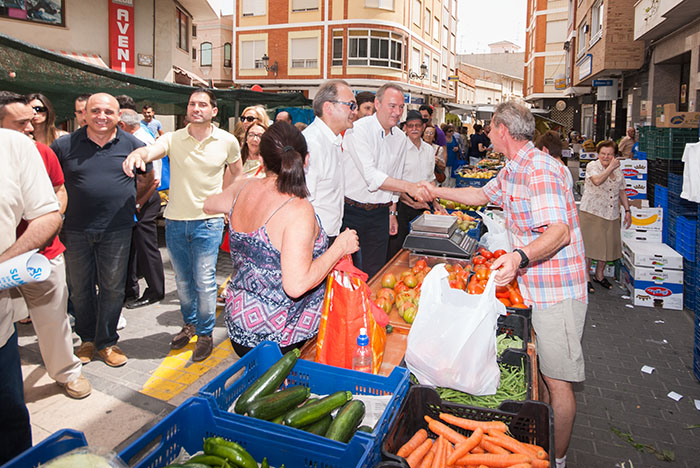 Fabra visita el mercado de Benaguasil con el candidato popular Joaquin Segarra