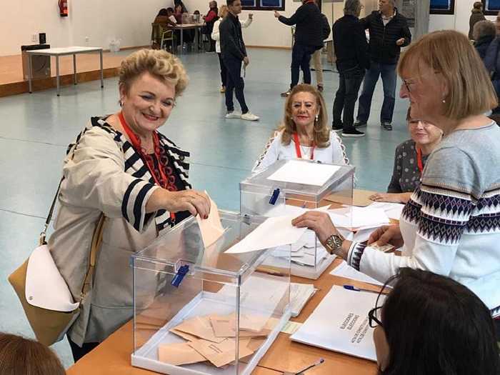 La candidata del PSOE al Senado, Mercedes Berenguer, votando en l’Eliana.