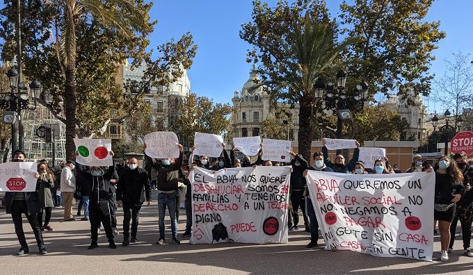 La Plataforma d’Afectats per les Hipoteques es concentra d’avant de l’oficina de Bankia de l’Eliana