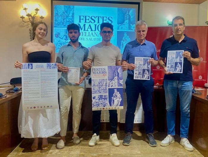 L’Ajuntament de l’Eliana ha presentat ahir la programació de les Festes Majors de 2025, que se celebraran del 5 al 17 de juliol, i ho ha fet amb els seus protagonistes: el clavari major de la Mare de Déu del Carme, Juan Vallés; la clavariessa major de la Puríssima, Candela Diana Gascó, i el clavari major del Crist del Consol, Andreu Gómez.