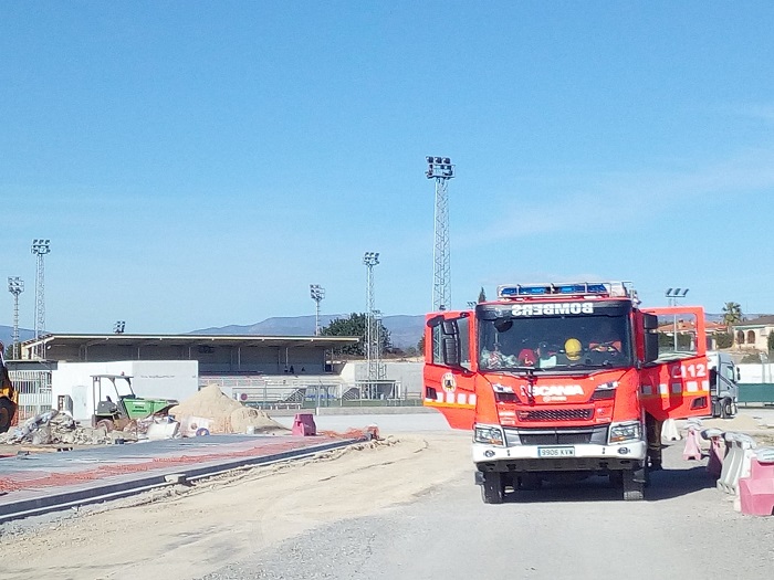 Hasta la zona se han desplazado los Bomberos, ya que al parecer los trabajos han provocado un reventón en la acometida de gas del complejo deportivo. De hecho el olor a gas era intenso en las inmediaciones del recinto.
