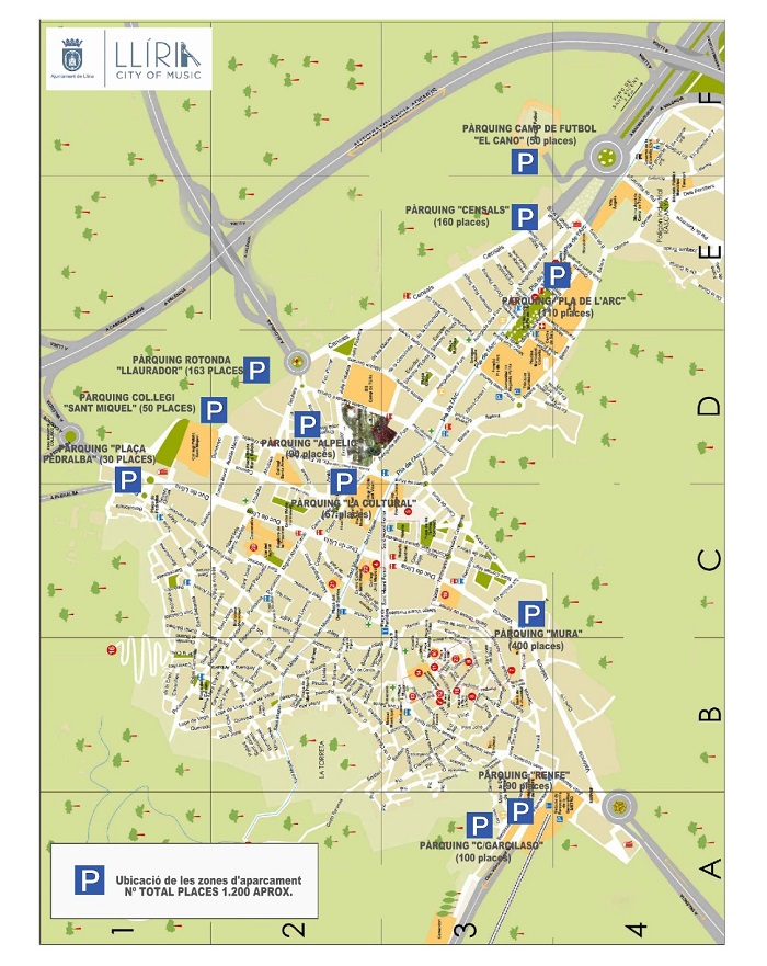 L’Ajuntament de Llíria ha completat una gran xarxa d’aparcaments dissuasius en el nucli urbà, prop de zones comercials i administratives, on l’usuari en poc més de 3-5 minuts pot accedir a tots els servicis públics o als eixos comercials de la ciutat.