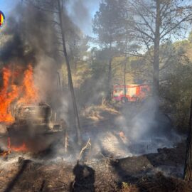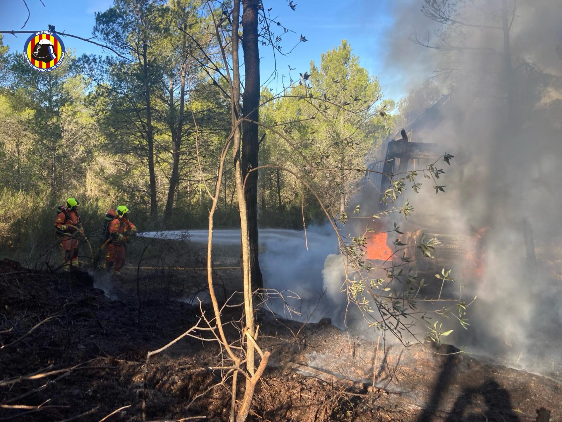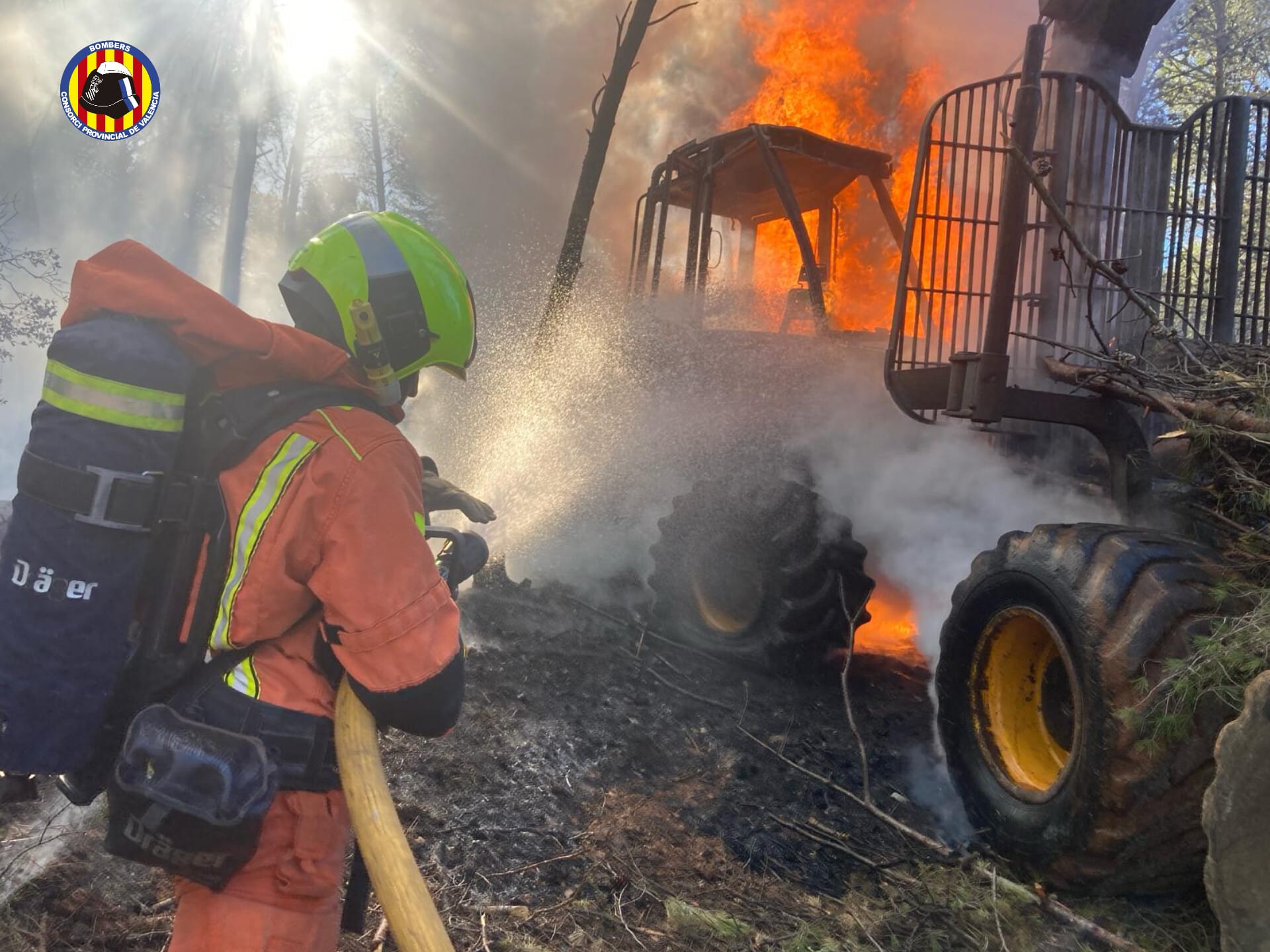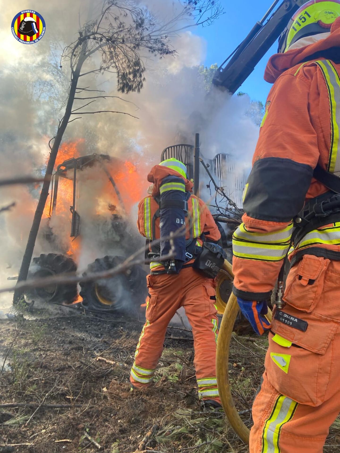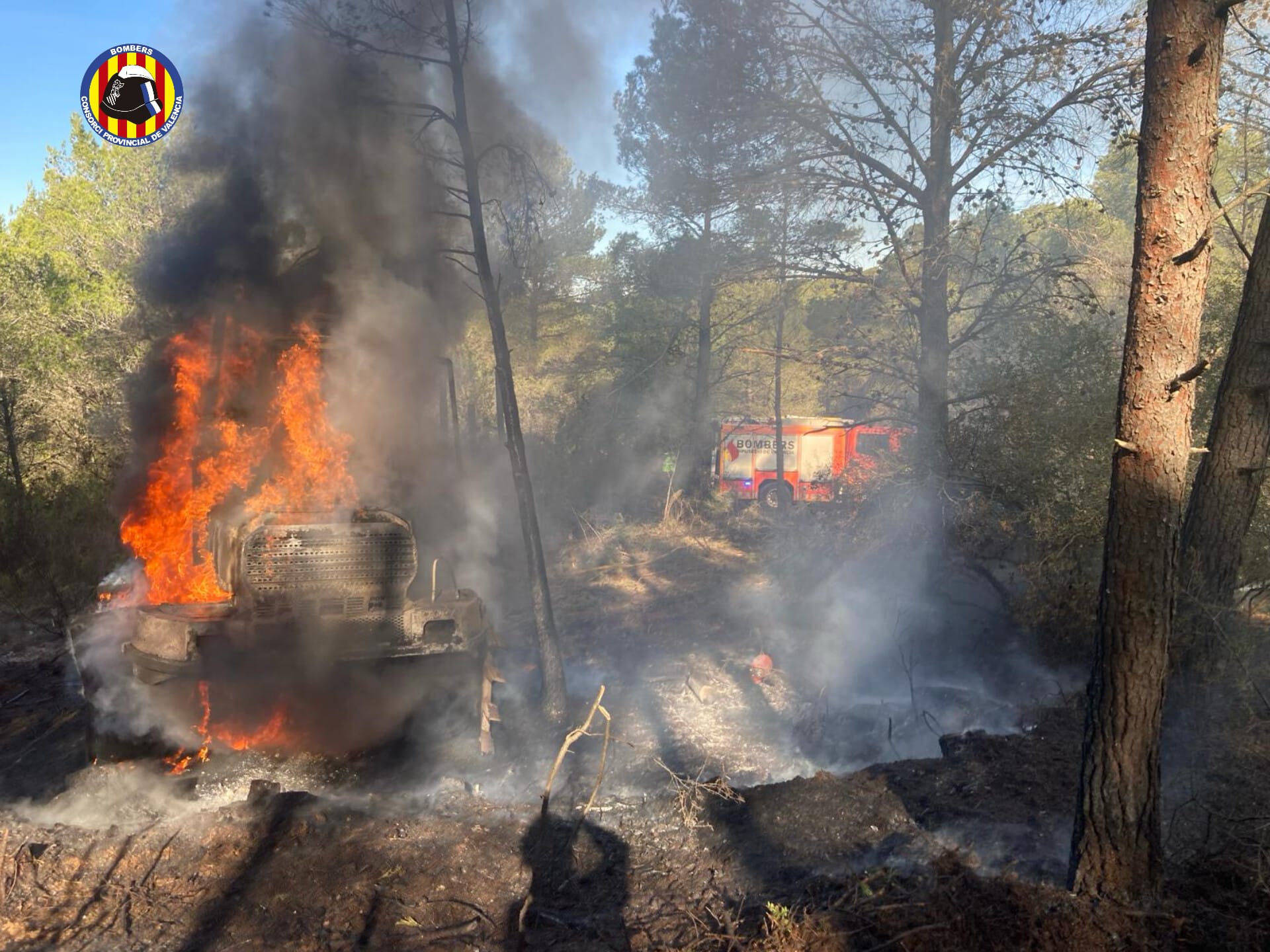El Consorci de Bombers de València s’hi ha mobilitzat a un incendi a Serra, que ha afectat una màquina destinada a treballs forestals i derivat d’aixó s’hi ha propagat a la vegetació circundant.