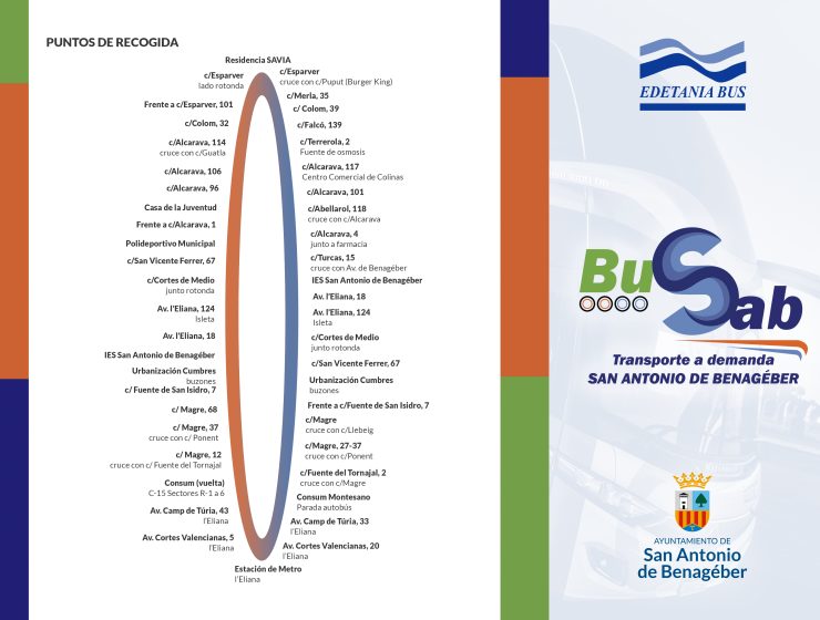 Sant Antoni de Benaixeve implanta BUSSAB, un nou servei de transport a demanda El projecte pilot entra en funcionament dilluns que ve conectant cada nucli poblacional i arribant fins al Metro de l’Eliana