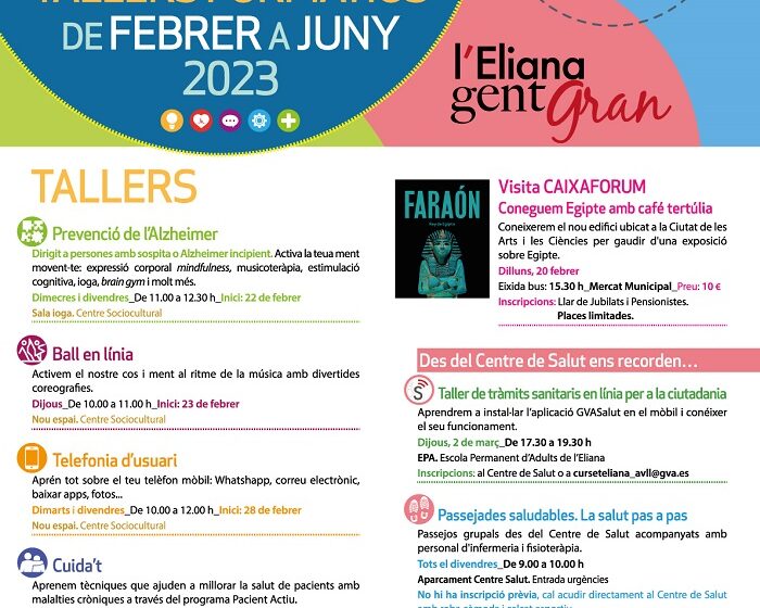 L’Ajuntament de l’Eliana ha ampliat l’oferta de tallers formatius Aula Gran Activa’t per als mesos…