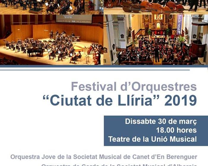 El teatre de la Unió Musical acollirà dissabte 30 de març, a les 18 hores, el Festival d’Orquestres “Ciutat de Llíria” 2019.