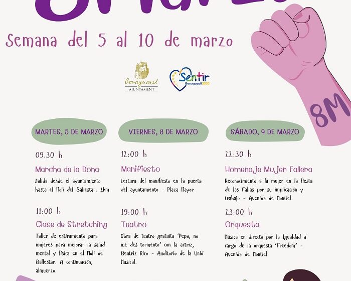 L’Àrea d’Igualtat de l’Ajuntament de Benaguasil ha presentat la programació d’activitats amb motiu del Dia…