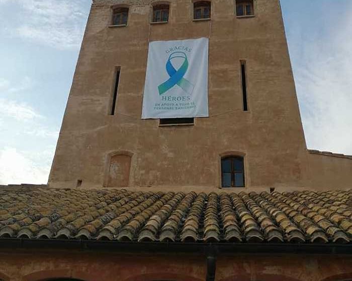 El Castillo de Benissanó luce una lona y los colores de los sanitarios
